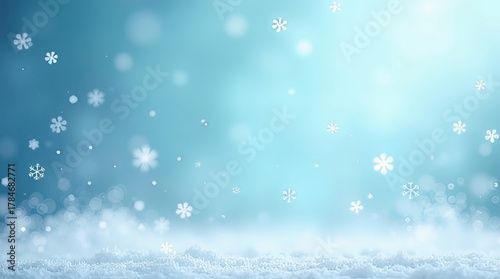© Stocks Fluent, Fototapeta premium Snowy winter background with falling snowflakes and snowdrift on a blue gradient