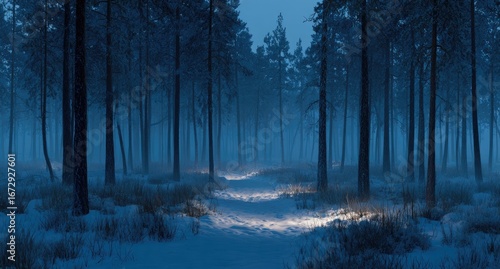 © Ida, Naklejka premium Snowy winter forest at night (1)