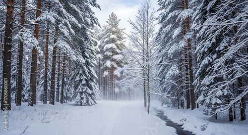 © Karina, Naklejka premium Snowy Winter Forest Path.