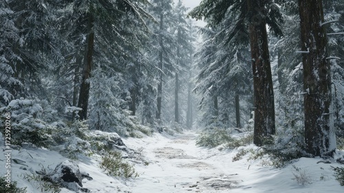 © Johannes, Fototapeta premium snowy winter forest path
