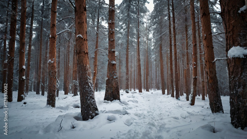 © Rachanon, Fototapeta premium Snowy Winter Landscape in the Mountains with Trees and Frost