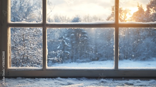 Fototapeta premium Snowy Winter Landscape Seen Through Window