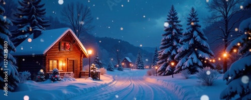 © เดือน สุขทั่วญาติ, Fototapeta premium Snowy winter landscape with Christmas decorations at night, festive atmosphere, snowy winter, festive lights