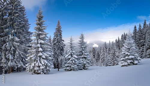 © Zara, Naklejka premium snowy winter landscape with several christmas trees generated by ai