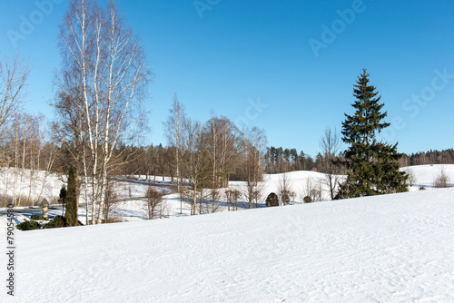 © Martins Vanags, Naklejka premium snowy winter landscape with snow covered trees