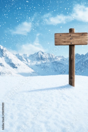 © Mandeep, Naklejka premium Snowy winter landscape with wooden signpost