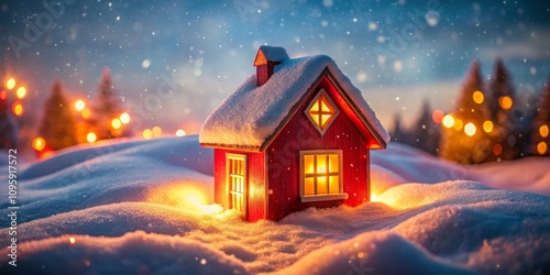 © BrilliantPixels, Fototapeta premium Snowy Winter Night Illuminated Red House in a Winter Wonderland