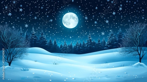 Naklejka premium Snowy Winter Night Landscape Under Full Moon