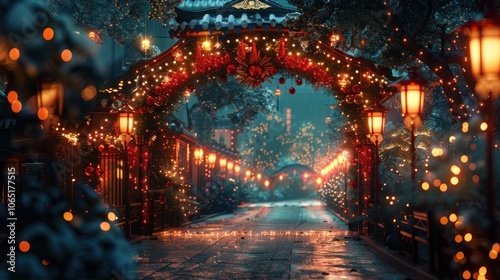 © harryaishi, Fototapeta premium Snowy Winter Night with Festive Lights