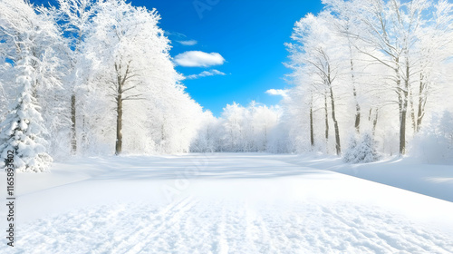 © share, Fototapeta premium Snowy Winter Wonderland Landscape Illustration