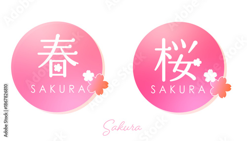 Obraz premium 春のタイトルフレーム 満開の桜 SNSアイキャッチ ロゴマークイラスト 日本観光 白背景