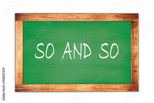 Fototapeta premium SO AND SO text written on green school board.