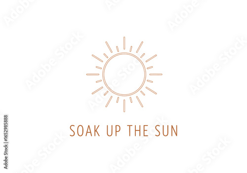 Fototapeta premium Soak up the sun text with sun icon isolated on white background