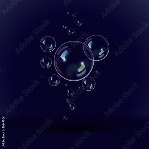 © luca_luppi, Naklejka premium Soap bubbles on a black blue background