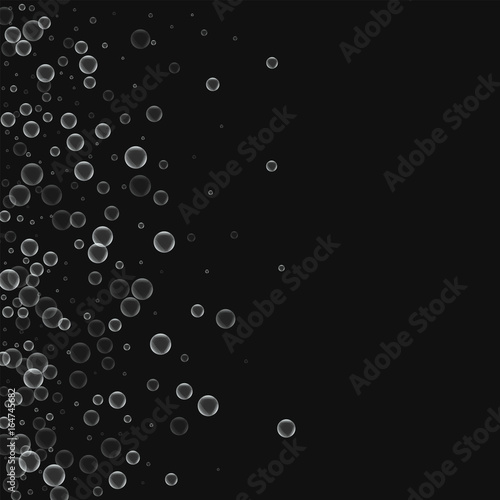 Obraz premium Soap bubbles. Scatter left gradient with soap bubbles on black background. Vector illustration.