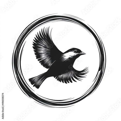 © CUNGKRING, Naklejka premium Soaring Bird Ink Art