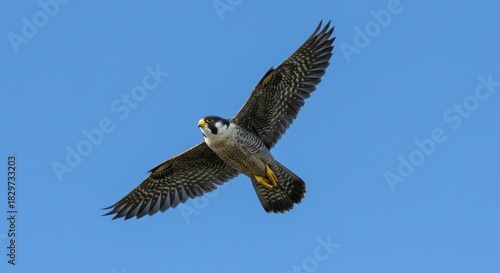 © Alleuy, Obraz premium Soaring bird of prey in flight against a clear blue sky