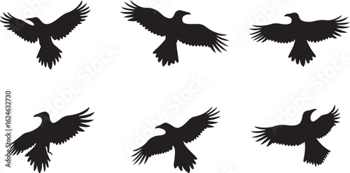 © Bustame41, Obraz premium Soaring Bird Silhouettes Set for Nature-Inspired Designs