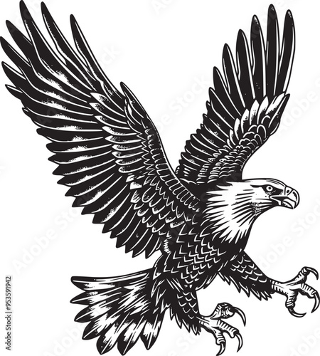 Fototapeta premium Soaring Eagle: A Powerful Vintage-Style Vector Illustration