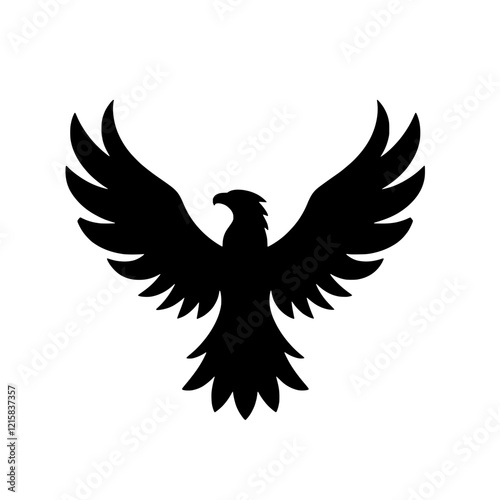 Fototapeta premium Soaring Eagle Silhouette: A powerful black silhouette of an eagle with wings spread wide, symbolizing freedom, strength, and determination.
