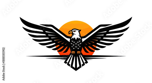 © Jean, Obraz premium Soaring eagle silhouette against a sunset vector illustration