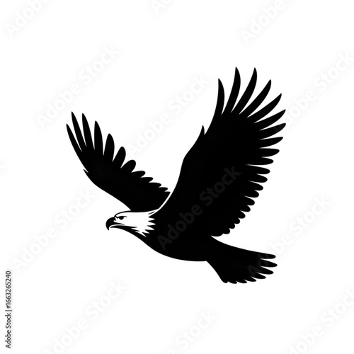 Fototapeta premium Soaring eagle silhouette against black backdrop, symbol of freedom, strength, and power in flight