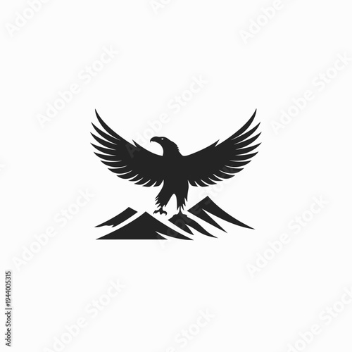 © arra, Fototapeta premium Soaring eagle silhouette over mountain peaks graphic illustration