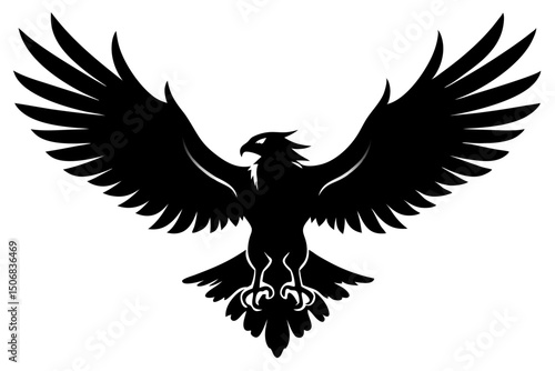 © Elements lab, Obraz premium Soaring Eagle Silhouette with Open Wings Isolated on White