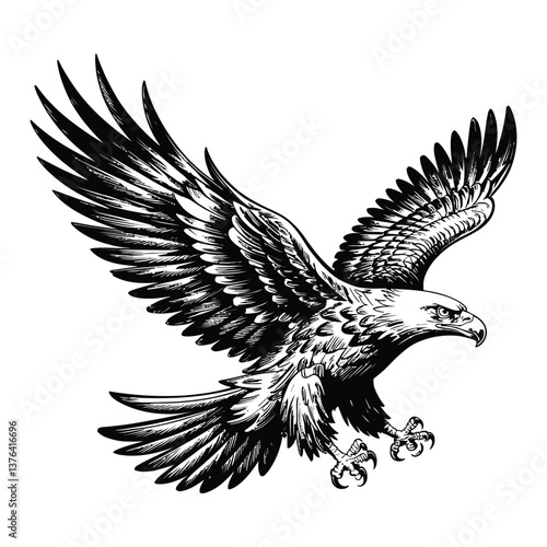 © MdAkram, Obraz premium Soaring Eagle Sketch Silhouette, Vector, Icon, Logo, White Background.