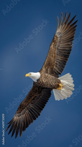 Obraz premium soaring eagle with blue sky background