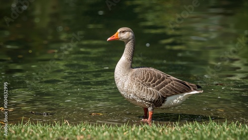 © TheWaterMeloonProjec, Fototapeta premium Soaring graylag goose in the air