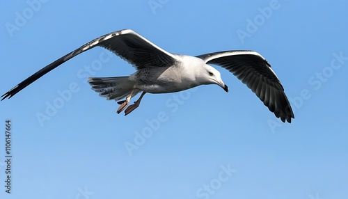 © tingting, Fototapeta premium Soaring Great Black-Backed Gull against a blue sky