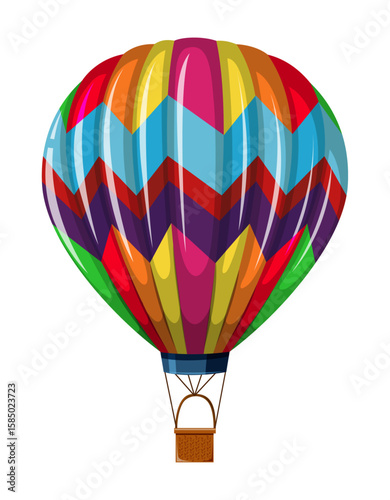 Naklejka premium Soaring Spectrum: A vibrant hot air balloon with a colorful, eye-catching...
