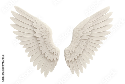 © Michael, Naklejka premium Soaring white wings expanding dramatically, symbolizing boundless freedom against clean transparent backdrop