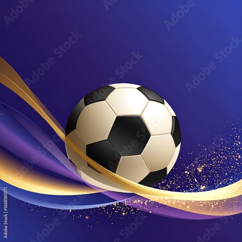 Fototapeta premium Soccer Ball, Abstract Waves, Field Background