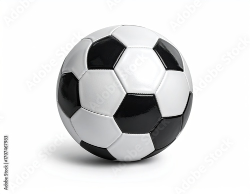 © Leo, Obraz premium Soccer ball, black and white, hexagonal panels, isolated on white background