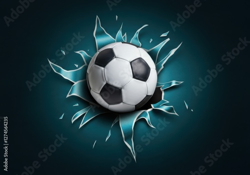 © Rizka, Obraz premium Soccer ball breaking through wall dynamic design