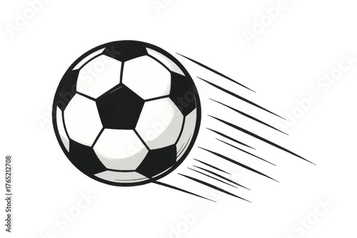 © Michael, Obraz premium Soccer ball flying, illustrating fast game, sports speed, movement, and competition concept with motion lines
