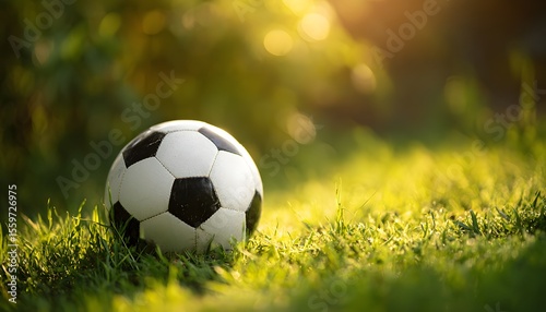 © Chanchira, Fototapeta premium Soccer ball football on grass in sunny day