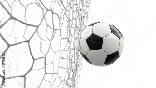 Fototapeta premium Soccer Ball Hitting Net on White Background Isolated