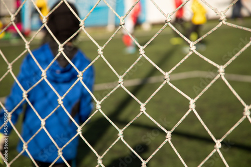 Naklejka premium soccer ball in goal net