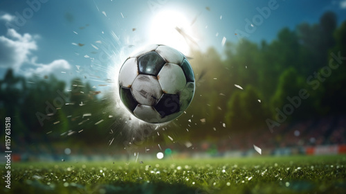 Fototapeta premium Soccer Ball in Mid-Air with Stadium Background