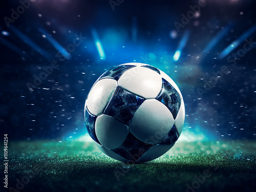 Fototapeta premium Soccer ball in the net representing winning and team success in football