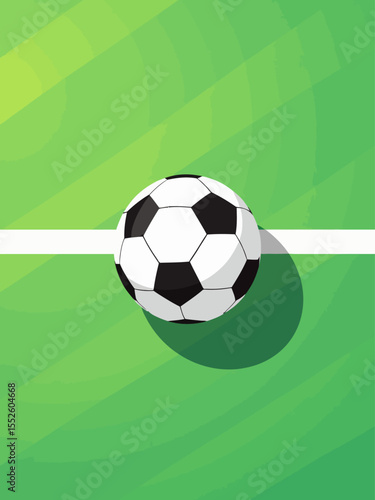 © Gustina, Obraz premium Soccer ball lying on green field near white line top view