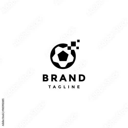 © ilunilun, Obraz premium Soccer Ball Match Data Logo Design. Simple Football Icon With Pixel Data Accent Logo Design.