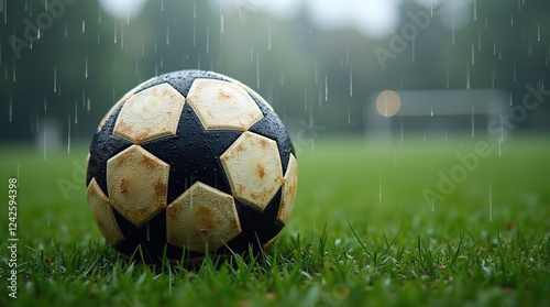 Naklejka premium soccer ball on grass