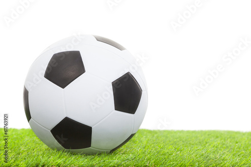 © Tom Wang, Obraz premium soccer ball on green grass isolated on white