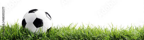 © pixelliebe, Obraz premium soccer ball on green grass on white background