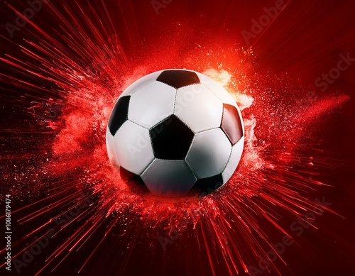 Obraz premium soccer ball on red explosive background intense and powerful concept of a...