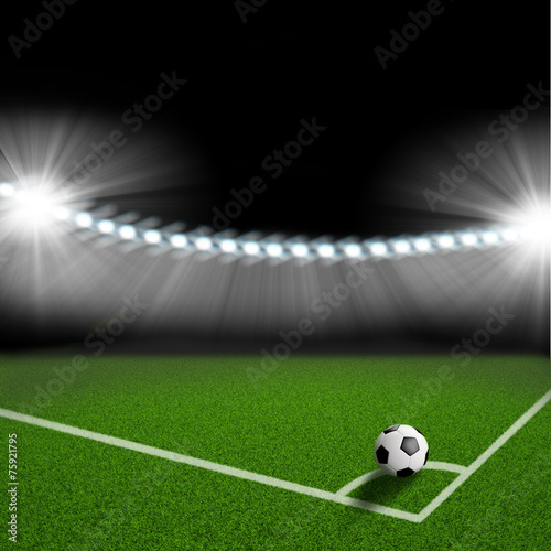 Obraz premium soccer ball on the green field corner
